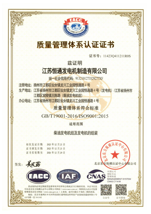 恒通發(fā)電機(jī)榮譽(yù)資質(zhì)
